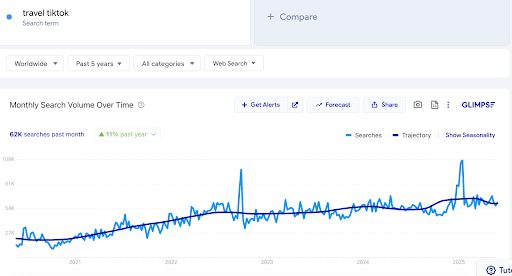 Travel TikToks are taking off — with over 62,000 searches for "travel TikTok" in the past month alone. So, how can brands ride the viral wave?
