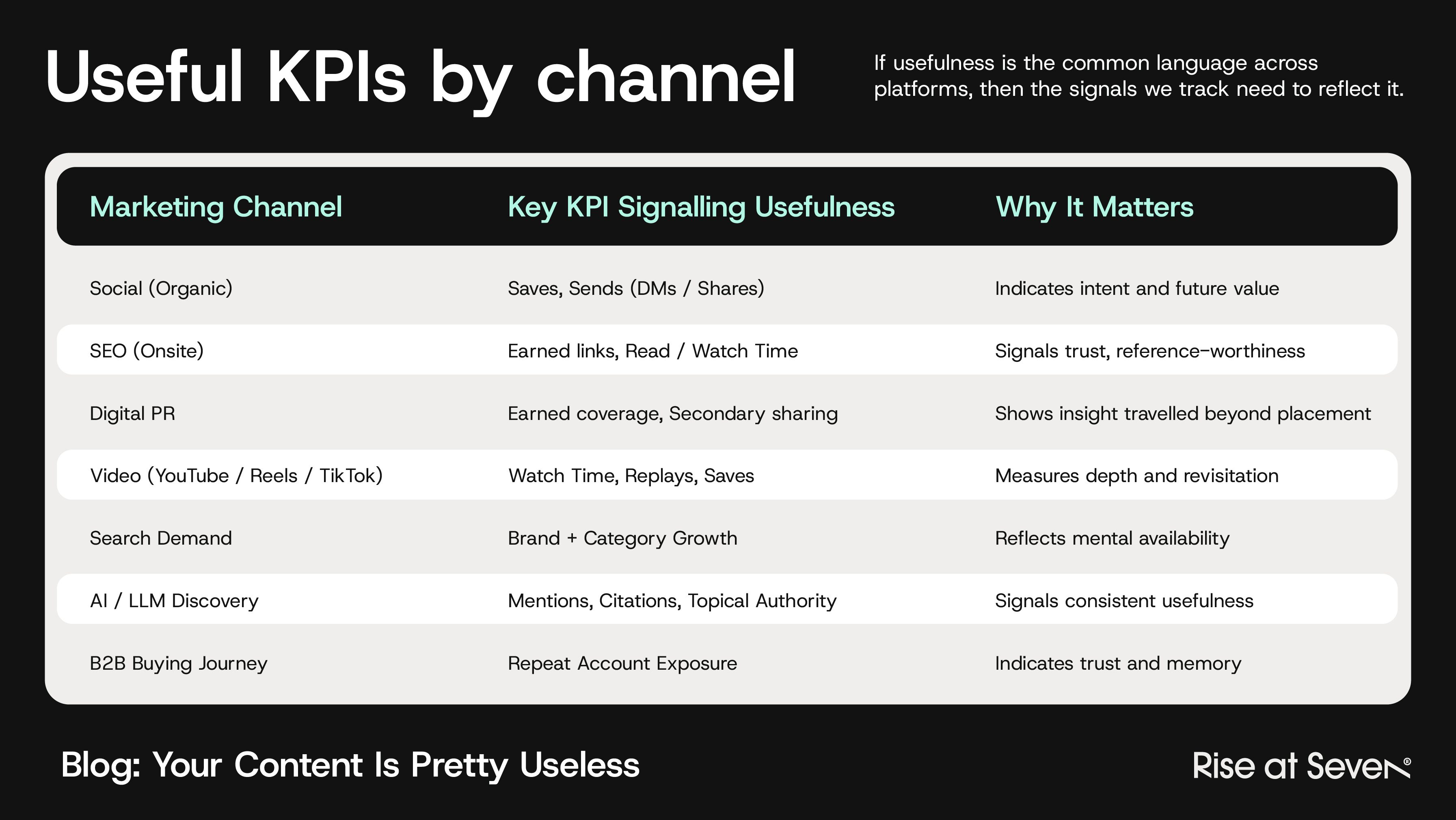 So what should we KPI'ng ourselves on to create more useful content?